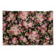 Decorating this product is a beautiful floral pattern of pink and red roses surrounded by green foliage on black background.