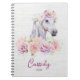 Beautifully handpainted white pony with pink and purple floral decoration. The name is easy to edit. Beautiful Floral Pony DIY Name notebook.