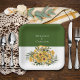 Beautiful 9" wedding paper plate - perfect for wedding rehearsal dinners and/or receptions, you'll love the green and white with the big yellow flower design coupled with two gold wedding rings. Be sure to update the names prior to placing into your shopping cart. Other sizes available.