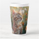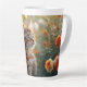 Snuggle up with this adorable latte mug featuring a fluffy kitten frolicking in a vibrant rose field. Its charming design adds a touch of comfort to your coffee breaks, making every sip delightful. Perfect for cat lovers and rose enthusiasts, this mug is a must-have for cosy moments!