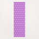 Cute Yoga mat with flower of life pattern on violet background on the front side. On the back side is pattern free and the word YOGA inside a circle. Text can be personalised.