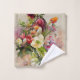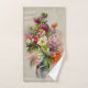 Very elegant towels with a vase full of flowers, in shades of red, pink, orange and white. This is a digital image in the style of Paul De Longpre.