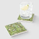 The coasters are gorgeous, a quality feel and heavy weight. They look like a precious archeological find. A rustic stone juxtaposed with a modern floral black and white print. I like the way the print goes slightly imperfect on the cut stone edges giving them a kind-of natural beauty.