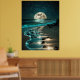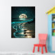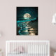 Beautiful Full Moon Beach Ocean Starry Night Poster