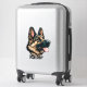 The stick looks amazing. Unfortunately, it would not stick on our suitcase as it was textured. When we found a non-textured (smooth) suitcase, the sticker stuck and looks great. The printing looked awesome.