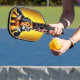 The paddle looked amazing when I received it but upon using it the black ( paint) came off and the paddle no looks like it has measles. It’s all pitted with white spots where I have been hitting the ball. .