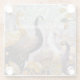 Beautiful Gold White Peacocks Christmas Glass Coaster