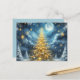 Beautiful golden Christmas tree blue postcard.
