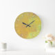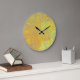 This beautiful golden clock is the perfect accent to any room. It features a brilliant background design that mimics the look of lovely marbled paper with swirls of color. The art has an overall yellow/golden tone with pinks, blues, greens and other accent colors. The clock design is rounded out with minimalist hour marks.