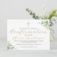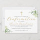 This beautiful watercolor greenery Confirmation invitation features rustic green leaves with a simple gold colour cross and elegant calligraphy script. The back is a pretty leafy pattern. Personalise the name and include important details for this beautiful religious occasion.