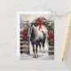 Beautiful Grey Horse with Winter Garland Christmas Holiday Postcard