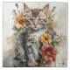 Adorable grey tabby cat with hints of orange fur surrounded by flowers in this watercolor illustration. Makes a beautiful gift for any cat lover.