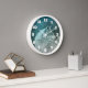 A clock with a photograph of a gorgeous furry fluffy grey wolf. In the background is a dark forest with trees. Magical mystical vibe.