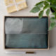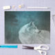 Tissue paper with a photograph of a gorgeous furry fluffy grey wolf. In the background is a dark forest with trees. Magical mystical vibe.