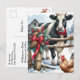Beautiful Holiday Cow with Rooster Personalised Postcard