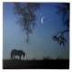 A beautiful art tile of a horse and crescent moon with stars and big oak limbs. Super pretty, almost surreal image.