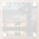 Simply beautiful, this glass coaster has a horse silhouetted by a southwestern sunset with an oak tree and a reflecting pond.