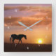 Beautiful Horse and Sunrise Morning Square Wall Clock