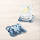 Paper coaster with a photograph of a pair of horses hitched together. A snowy day and a blue filter creates a magical scene.