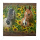 Beautiful Horses in Field of Sunflowers Ceramic Tile