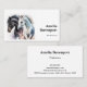 Business cards with a pair of black and white horses hanging out together. Illustrated with watercolors.