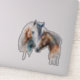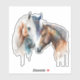 Contour sticker with a beautiful watercolor drawing. Featuring a pair of horses, brown and white. Head and neck visible with dripping paint along the base of their neck. Southwestern vibe.