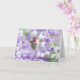 Joyeux Anniversaire / Happy birthday card featuring an anna's hummingbird with her pink throat feathers shimmering, flying in a field of purple flowers. Beautiful card for hummingbird, garden and nature lovers. Photo taken in Arcadia, California.