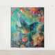 For hummingbird lovers, a beautiful hummingbird is surrounded by colourful tropical flowers.