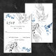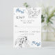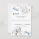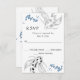 This wedding RSVP card features two beautiful black and white Japanese Koi fish swimming in shades of black, white and blue.