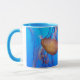 This mug shows a photograph of two beautiful jellyfish with long tentacles as they swim through pretty blue ocean water. This photograph was taken by my son, David Mann.