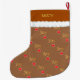 Beautiful joy heart pattern on brown Christmas stocking. Name is ready to be personalised.