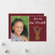 A lovely Christmas card for the holidays, this design features a burgundy background on the front and back. The front has a template for your photo on the left with "Joy to the World" written on the right side in white font. There is a decorative deer buckhead underneath. The back has a warm holiday message. Purchase yours today!