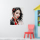 Ink Portrait Style of A Beautiful Woman with Red Highlights
