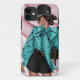 elegant unique feminine iPhone case with a Beautiful lady and stylish blush pink modern marble pattern
