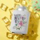 Can cooler with a beautiful illustration featuring a grey, black and white leopard portrait. This lovely animal is surrounded by a tropical flower bouquet. Elegant, exotic and lovely.