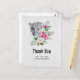 Thank you postcard with a beautiful illustration featuring a grey, black and white leopard portrait. This lovely animal is surrounded by a tropical flower bouquet. Elegant, exotic and lovely.