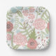 Beautiful Light Pink and Green Flowers Paper Plate