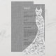A beautiful lace wedding dress on a grey linen background accents this menu, that is perfect for the rustic, country, vintage, modern, traditional or elegant bridal shower.