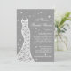 Delicate snowflakes and a romantic lace wedding dress accents this winter bridal shower invitation on an illustrated grey linen background. This invitation is shown on the basic paper; however, I recommend the weight and texture of the linen paper.