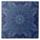 Navy blue and teal mandala ceramic tile. Elegant lace look bohemian mandala design with whimsical flowers, hearts, and leaves.