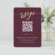 This elegant wedding response card features a place for your QR code so that guests can easily rsvp on your wedding website. The front features a simple and clean layout with trendy script typography and a burgundy marsala background. The back is a beautiful botanical berries and greenery holiday print, perfect for a Christmas or winter wedding.