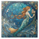 Beautiful Mermaid Art Nouveau Art Deco Style Blue Ceramic Tile
