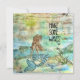 Flat Square Holiday Greeting Card with Beautiful Mermaid Make Some Waves artwork design illustration by TheFabricSeal print on demand shop at Zazzle.com #ZazzleMade https://www.zazzle.com/store/thefabricseal