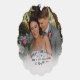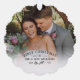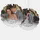 Photo ornament celebrating your first Christmas as Mr & Mrs personalised with photo, last name, and the year with a pretty mistletoe branch. First Christmas photo ornament personalised with wedding photos. First Christmas as married photo ornament with a pretty mistletoe twig.