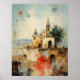 Beautiful Modern Abstract old small town painting colourful elegant Poster