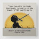 Little Boy is seen as a silhouette sitting in front of the setting sun. The word, “BEAUTY” is seen faintly in different fonts across the sun as it glows over the grassy horizon. This beautiful moment is inspired by the beautiful quote of David A. Carrizales of Little Boy, Big Dreams and illustrated by Christie Black of Creations from the Heart.
