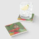 The coasters are gorgeous, a quality feel and heavy weight. They look like a precious archeological find. A rustic stone juxtaposed with a modern floral black and white print. I like the way the print goes slightly imperfect on the cut stone edges giving them a kind-of natural beauty.