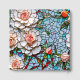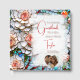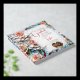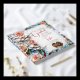A gorgeous illustration mimicking a stained glass and tiles mosaic of coral roses and with blue and other colourful accents. This elegant wedding guestbook has a beautiful vintage aesthetic. Bride and Groom's name and wedding date in rose gold metallic print.