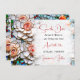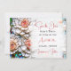 A gorgeous illustration mimicking a stained glass and tiles mosaic of coral roses and with blue and other colourful accents. These elegant wedding Save the Date card has a beautiful vintage aesthetic.