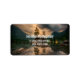 Address labels with a beautiful photograph. An evening shot with mountains and a calm lake. Cottage lights off in the distance.